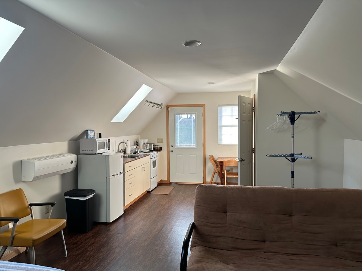 Comfortable for winter stays with heat, laundry access, and easy parking. Thoughtfully curated and designed for slowing down, this cozy garage apartment offers comfort and small-town charm in Point Pleasant. Enjoy a relaxing stay with a newly remodeled bathroom (summer 2025) and reliable essentials for short or extended stays. Minutes from downtown, Mothman attractions, dining, and Krodel Park. Brand new Samsung washer & dryer downstairs (exterior access). Available January 1 2026.