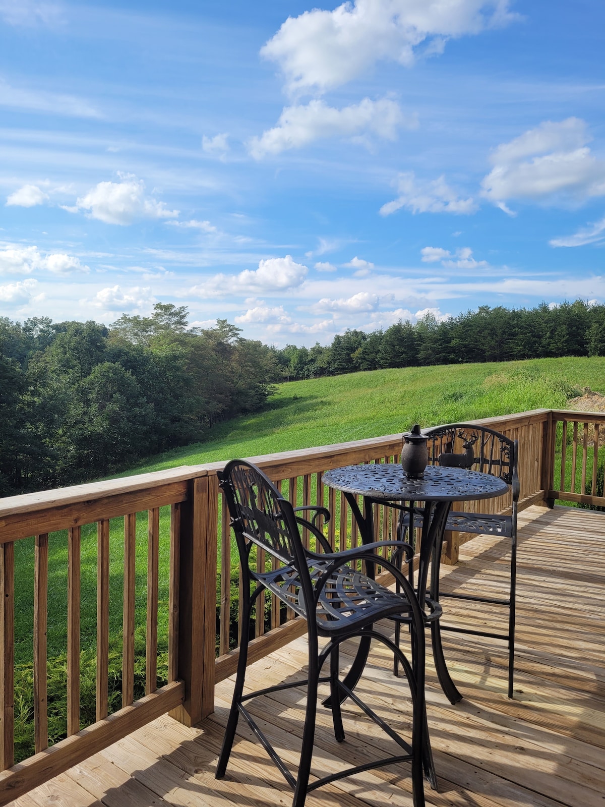 Located in the small community of Cottageville, WV is this 278 acre farm found at the end of a country road. This is the family farm that I grew up on as a child. My father Doug lives in the main house and tends to the hay fields and approximate 30 head of cattle. The farm house sits just below the top of a hill with a nice view of a farm field that the cows enjoy grazing on. Guests can enjoy relaxing on the large farmhouse porch, take walks, and use the fire pit.