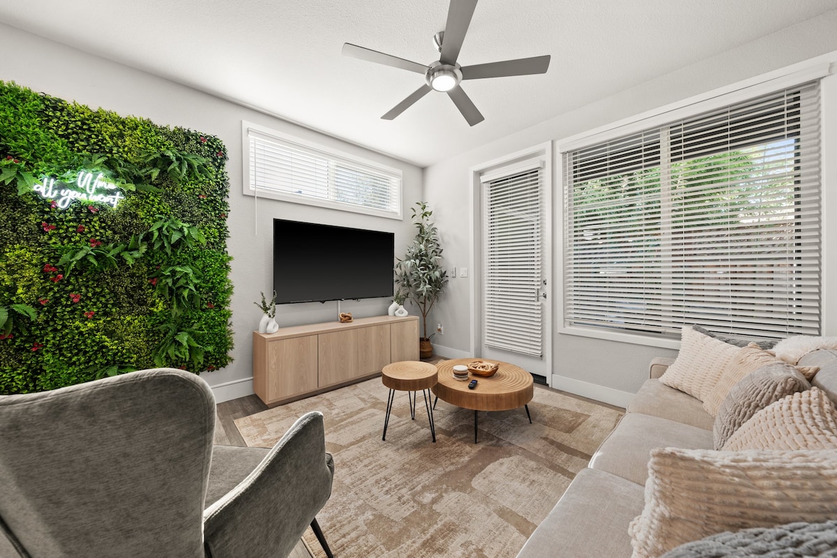 *Tranquil Wooded Retreat: 1 bdrm/1 bath nestled in nature, with beautiful water views from a private deck; ideal for outdoor lovers. *Modern Conveniences: Deluxe amenities, a cozy fireplace, and dedicated workspace w/ high-speed WiFi. *Stay Active: Private tennis court + indoor yoga area. *Full Kitchen: Stocked w/ organic coffee, tea, oils, and condiments. *Professionally cleaned, no checkout chores. *Ideal Location: Walk to Chicken Ranch Beach, Blue Waters Kayak Rental, and dining options!