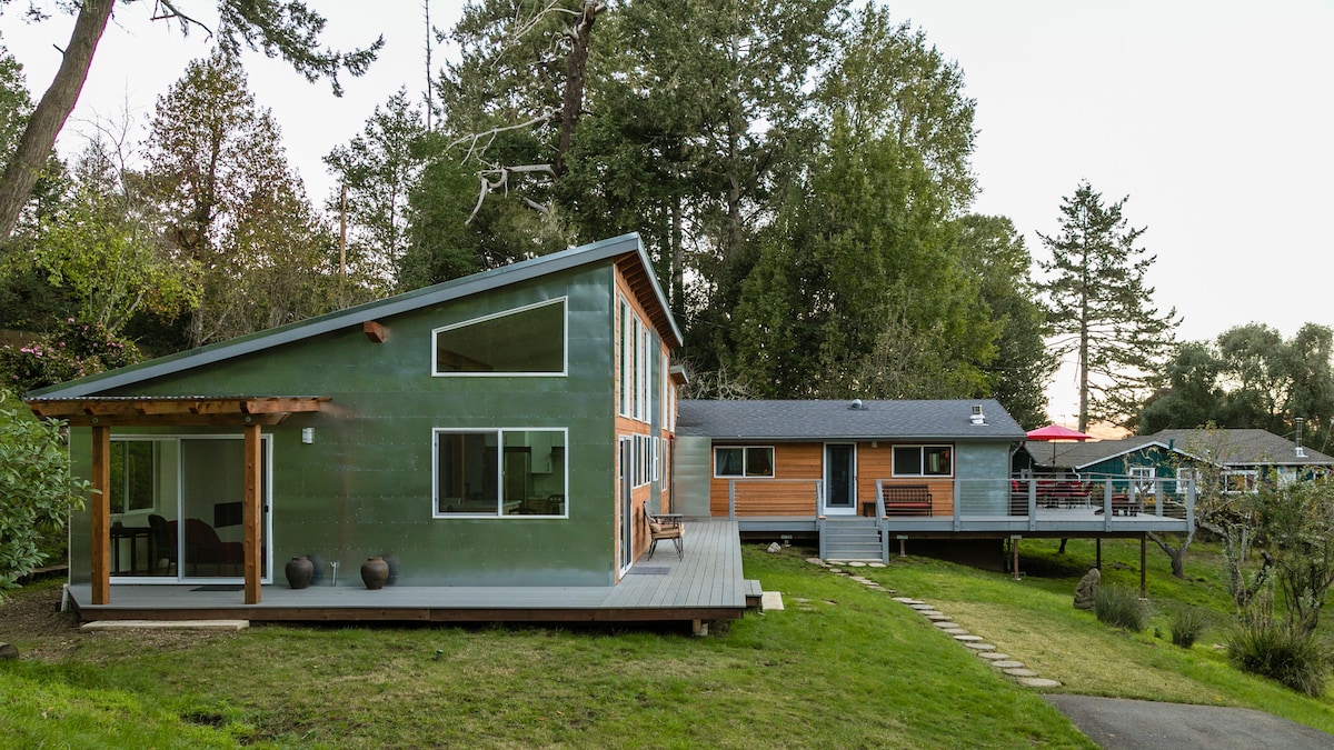 Truly a one of kind handmade, solar powered home of local materials filled with arts and crafts by local artists and treasures we have collected from around the world. Described by guests as “Asian Vintage” this sunny home sets perched above a year round creek and is surrounded by mature gardens and a forest of bay, oak and fir. About an hour from San Francisco and the Sonoma and Napa Valleys, 1.5 miles from Point Reyes Station and 2 miles from the Point Reyes National Seashore Visitors Center and Golden Gate National Recreation Area. Easily access beaches, waterways and parkland for hiking, swimming, surfing, kayaking, SUP boarding, mountain biking and all that West Marin has to offer. Or just enjoy unwinding in this comfortable and beautiful setting. Stroll down to the Inverness Park Market and Tap Room at the end of the street and enjoy some of the best food and drink in the area with a very local vibe. Entering the upstairs you will find a large living/dining/kitchen space constructed of huge beams, wide plank fir floors from wood milled on the property, a bank of windows with a bird's eye view of the forest and a large stained glass window. A fully equipped kitchen and stocked pantry allows you to cook up the bounty of Point Reyes farmers and purveyors on our vintage O’Keefe and Merritt stove. There is a dishwasher, microwave, toaster, mixer, coffee maker and blender. A Balinese dining table of coconut wood and tiger bamboo seats 6. The living area offers a comfortable pullout couch with a memory foam mattress. There is wifi and a smart TV with steaming Netflix, Hulu Plus and Amazon prime. Or enjoy any of the DVDs from our small library. A stereo tuner with an aux cable allows you to stream music from your 2.5mm jack equipped device. A deck off the living room has a table, chairs and a small gas BBQ. Also on the main floor is a sunroom with floor to ceiling glass and a glass roof, Balinese bamboo furniture, breakfast table and a side deck. The bathroom has a claw foot tub and shower. There is central heating with the thermostat located in the living area. Downstairs is a large, plush carpeted bedroom surrounded with rock walls, huge beams, a queen sleigh bed, lounge area, flat screen TV and a wood stove. Also a small, bright bedroom with a single bed and a small deck attached. An ante room between the bedrooms contains a wash sink and leads to a private rock walled, slate tile floored area with a dual head outdoor shower and hot tub. There is a laundry room for your use with a full sized washer, dryer, utility sink and linen storage. Outside you will find a stone patio with table, chairs and umbrella. There is a carport for 2 cars. Our son, David, lives on the property in a small separate cabin and serves as manager and caretaker. He will most likely be your point of contact here on Airbnb and throughout your stay. Please read the house rules in this listing and the house manual on the desk at the entry when you arrive.