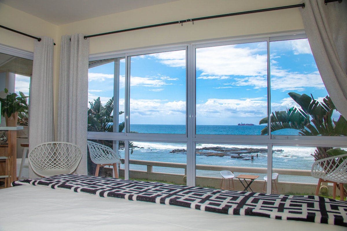 Kick back & relax in this calm, stylish airconed space surrounded by restaurants. Inverter for back up power so uninterrupted power. Panoramic sea views & harbor entrance view. Perfect for romantic or family getaway or business trip. 1 bedroom+sleeper couch. 5 min walk away from the promenade & beaches & restaurants. 2 min drive to Ushaka. Active promenade. Surfing,supping avail for the canals & ocean nearby. Glorious sunrises over the ocean.Safe block of flats/area, 24/7 security. Safe parking.
