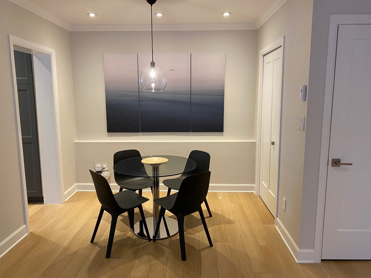Situé au Coeur du Village de Montebello tout devant la fameuse fromagerie & marina au bord de la rivère des outaouais 🏡le 665 Logement rustique modernisé d'une ambiance Zen qui vous charmera dès votre entrée 🛏Capaciter de 2 voyageurs, d'une chambre a coucher lit queen parfait pour un couple ou ami(e) 🛁😱 Salle de Bain unique en son genre 📺 Digne d'une salle de cinema maison🎞 Profitez d'une espace de salon spacieuse, d'une télévision de 65'' et d'un sofa comfortable. Wifi, Netflix,