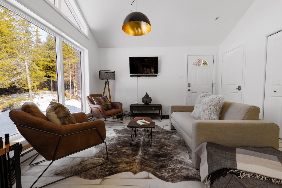 ☞ Bienvenue dans le charmant chalet LoveNest, votre havre de paix idéal pour une escapade romantique au cœur de la nature dans les Laurentides, près de la province de l'Ontario ☞ Avec de généreuses fenêtres qui encadrent des vues à couper le souffle sur la montagne majestueuse et le lac est conçu pour fournir une évasion intime pour ceux qui recherchent la tranquillité ☞ Perché au sommet d'un terrain montagneux de plus de 50 000 pieds carrés