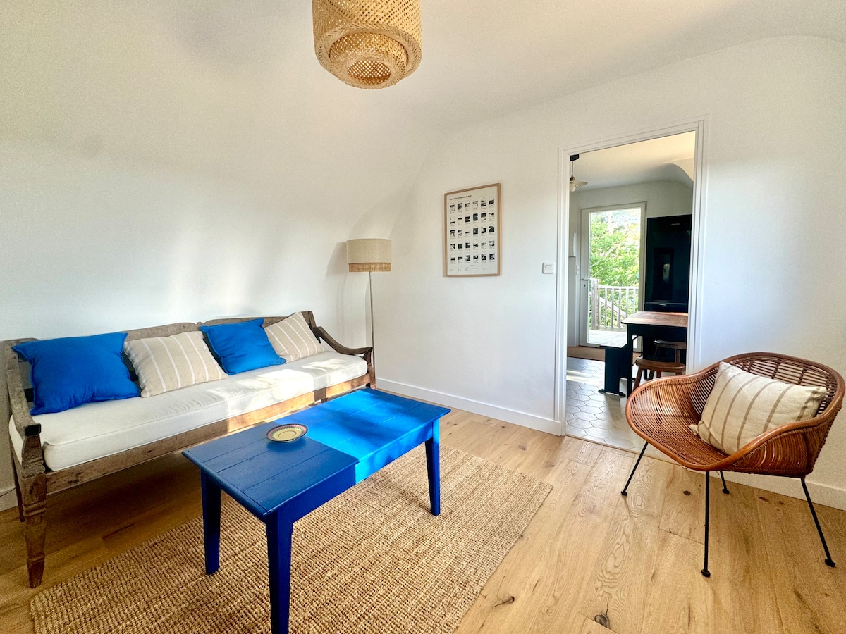 Welcome to our family home, a peaceful retreat in the heart of Pors Carn, Brittany. Lovingly renovated with natural materials, it features wood and restored vintage furniture, blending warmth, charm, and authenticity. Just steps from Pors Carn beach and the famous La Torche surf spot, it’s also the perfect starting point for peaceful walks or bike rides through coastal trails, sandy dunes, and the gentle Breton countryside.