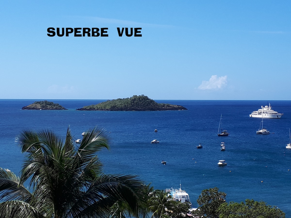 Maison , vue 180° sur mer des Caraïbes. Plage a 50 mètres. Cuisine toute équipée (plaque, micro-ondes, lave vaisselle, lave linge etc...), air conditionné dans les chambres, grande véranda de 50m2. Bar ouvert sur véranda. Deck avec solarium et barbecue. Chambres spacieuses avec rangements. 2 salles de bains, 2 WC. Salon et espace repas sur véranda. Wifi gratuit (fibre) Proximité route passante occasionnant en journée du bruit de voitures . Cet inconvénient disparaissant le soir et la nuit.