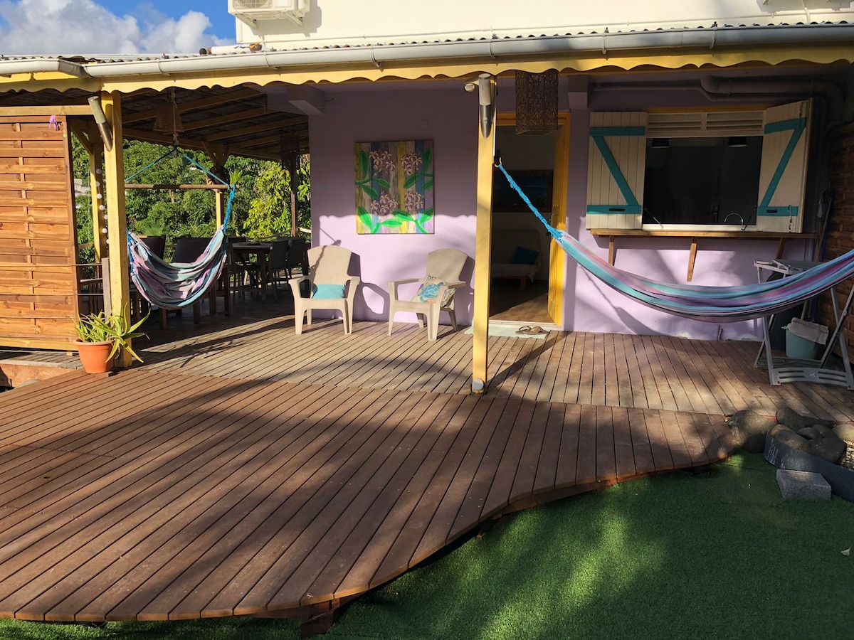 Modern charm of a typical Caribbean house, in wood and concrete. Freshly renovated, 2 air-conditioned bedrooms, bathroom and shower with view of nature, + a small indepdt bungalow with air-conditioned bedroom and its bathroom. All the comfort during your stay. In a wooded setting, very quiet, 3 mins by car from the beautiful beaches and shops of Ste Anne (resto, local market, bank, traditional shops...2 places in the private car park.