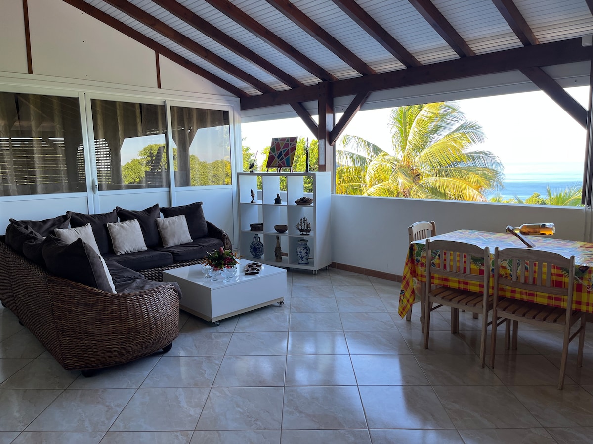 Maison , vue 180° sur mer des Caraïbes. Plage a 50 mètres. Cuisine toute équipée (plaque, micro-ondes, lave vaisselle, lave linge etc...), air conditionné dans les chambres, grande véranda de 50m2. Bar ouvert sur véranda. Deck avec solarium et barbecue. Chambres spacieuses avec rangements. 2 salles de bains, 2 WC. Salon et espace repas sur véranda. Wifi gratuit (fibre) Proximité route passante occasionnant en journée du bruit de voitures . Cet inconvénient disparaissant le soir et la nuit.