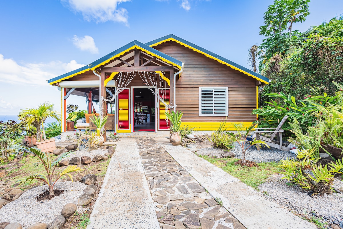 Jolie villa pouvant accueillir 2 à 6 personnes, située sur la colline de Rochers à Pointe Noire, au cœur de la côte sous le vent. 2 chambres climatisées, 1 mezzanine avec lit double équipée d'un WC séparé non climatisée Joliment décorée avec vue imprenable sur le large, cadre verdoyant et fleuri. Proche de toutes commodités, anse caraïbes, restaurants, (15mn en voiture) jardin botanique, plage au sable blanc, cascade aux écrevisses, réserve COUSTEAU à Malendure, centre de plongée.