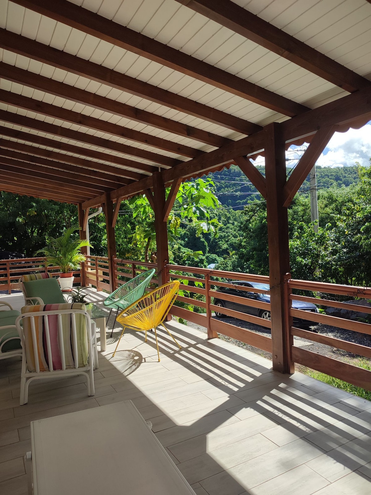 Kaz A Zot fait partie du site Les Terrasses d'Acomat. Chalet créole avec piscine privée, large vue mer imprenable, implanté dans un vaste jardin tropical. Vous vous sentirez ici comme à la maison, décoré avec soin, literie de qualité. Tentez l'expérience de vivre dehors, la nature vous entoure, le chant des grenouilles et le vent dans les palmes bercent vos nuits. Idéal pour décompresser et se ressourcer. Nous habitons sur le site et vous accueillerons en personne. A bientôt