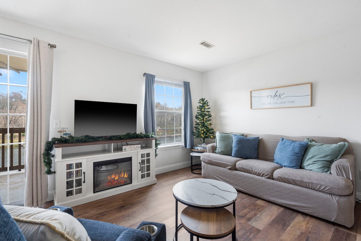 Nestled on the quiet shores of Lake Taneycomo, yet minutes from the hustle and bustle of Branson’s main strip, this quiet condo is perfect for your family getaway. Boasting two bedrooms (one a king bed!), two bathrooms, a pull out couch, a full kitchen, fresh roasted coffee beans, WiFi, and a shiatsu full body massage chair, this home will make you feel right at, well, home! 2 miles to the great MOONSHINE Beach - anyone can find a swimming pool to swim in, but you've got the beach!