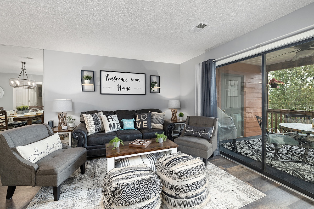 Enjoy a stylish and relaxing getaway in Branson’s premier condo resort. Nestled inside the gated Pointe Royale Golf Village, our luxury condo is your perfect blend of comfort and excitement—just minutes from Branson’s famous entertainment district. Luxury Living – Thoughtfully designed with all West Elm furnishings, no expense spared. Stay & Play Golf Special – only $60 per person! Resort Amenities – PGA-rated golf course, outdoor seasonal pool, hot tub, and indoor pool.