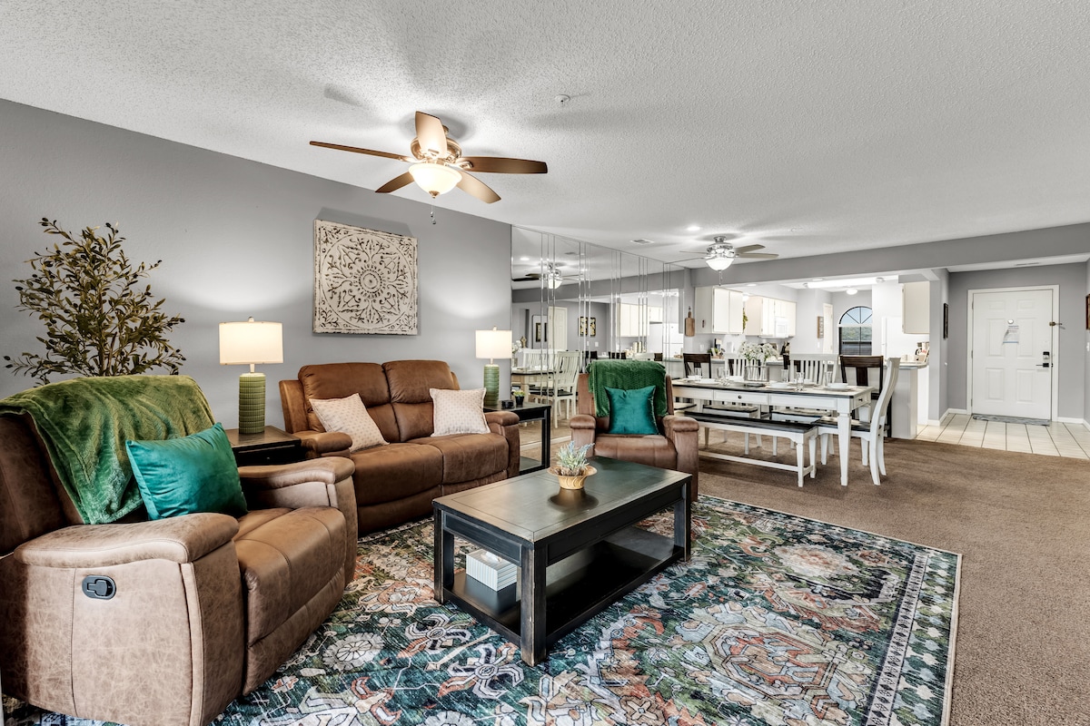 Experience comfort in this beautifully decorated 2-bedroom, 2-bathroom condo that accommodates up to 6 guests. It features 2 king beds, sofa sleeper and a cot, along with large flat-screen TVs in each bedroom and the living room. Unwind in cozy recliners by the fireplace while enjoying a movie. The kitchen boasts stainless steel appliances and ample seating, plus an electric BBQ grill on the back porch. Year-round amenities are just a short walk away, making this the perfect home away from home.