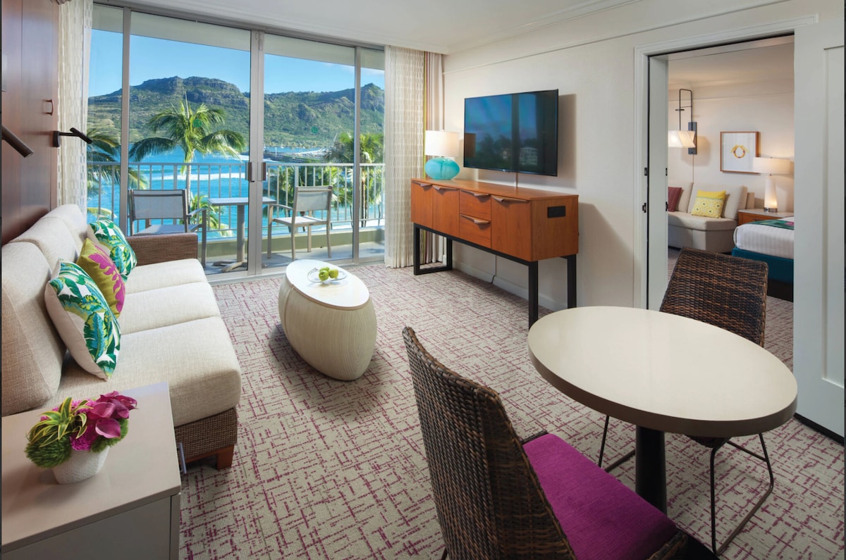 Luxurious Marriott Vacation Club resort. Stay in a beautiful Ocean View Parlor with Kitchenette. The room has a Queen Murphy Bed. Easily put the bed away and have a nice living space for the day time. Close to incredible hikes. Includes free airport shuttle & parking. Restaurants on property. Pricing is less than HALF of what you would pay booking directly with the hotel. Hot tubs, pools, long path along the beach. Feel free to message me for same day stay and I'll check availability