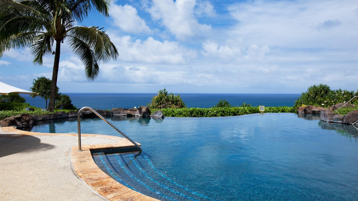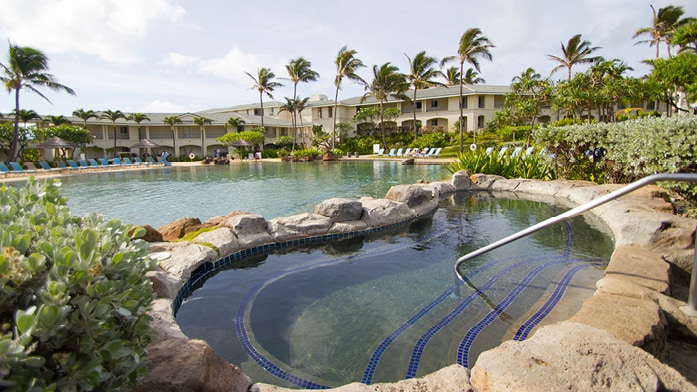 Tucked away in the natural beauty of Kauai’s southern tip, this vacation retreat offers a dream escape overlooking the stunning Shipwreck Beach. Surrounded by lush landscapes, it features spacious two-bedroom suites with full kitchens, a fitness center, tropical gardens, and a serene pool—perfect for unwinding under the Hawaiian sun after a day of adventure.