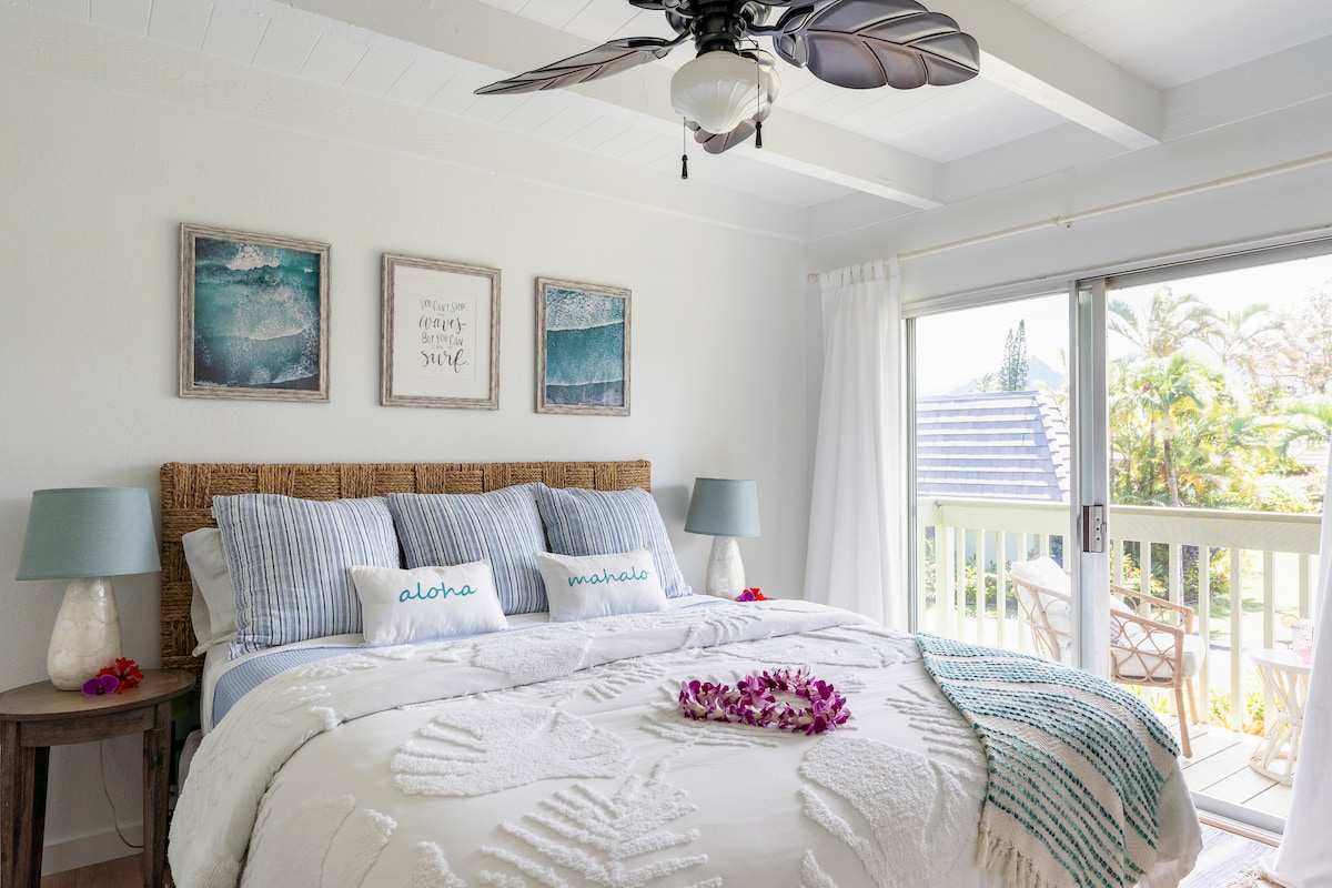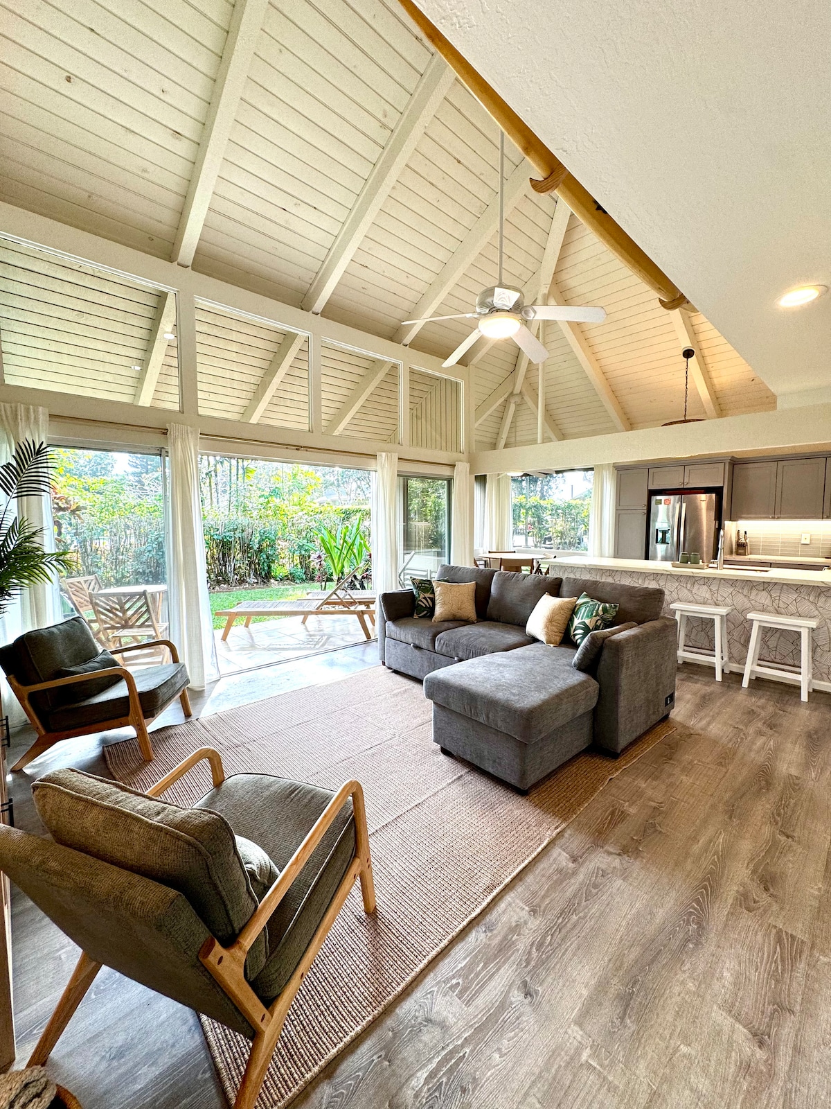 This cozy corner of the Garden Isle is our special place to quiet the mind and reconnect with nature by catching the sunrise outside on the spacious back lanai while listening to the awakening birds. The spacious open layout with large windows ensures plenty of natural light all day. Arrange breakfast in our fully equipped kitchen and head to the beach with the gear provided. Return home to enjoy a BBQ with fresh floral-scented trade winds or unwind with the sunset view from the 2nd-floor lanai.