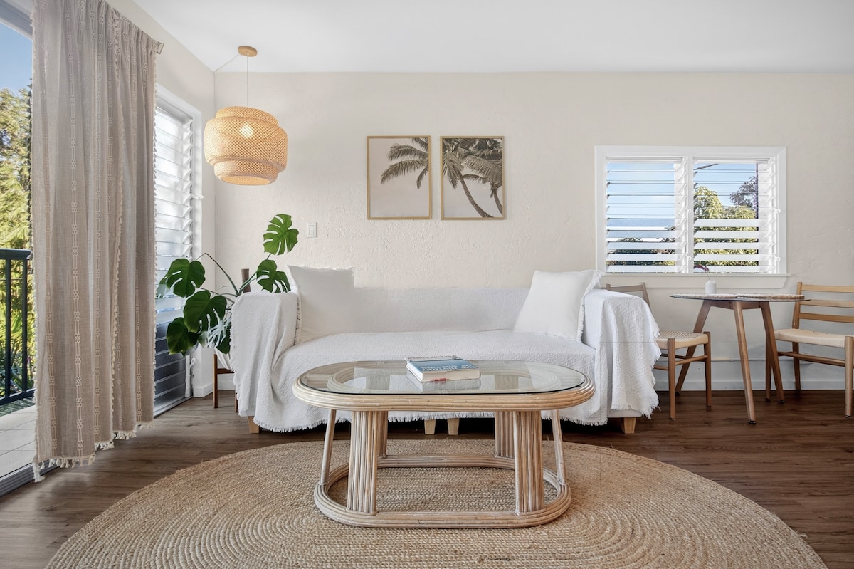 This bright and airy updated condo is the ideal place to stay in sunny Poʻipū for couples, honeymooners + small families. The open living space is clean and welcoming with a coastal boho vibe, and you'll enjoy beautiful ocean + garden views from the huge upper-level lanai. Location is the absolute best - from the beachfront property, you can walk to several of the best beaches on the south shore, local coffee, restaurants, shops, and the incredible pool within minutes.