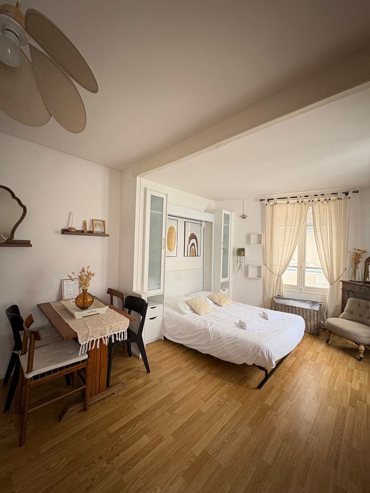 Bienvenue dans ce studio cosy et plein de caractère, idéalement situé au cœur de la ville. Avec sa décoration campagne chic, ses poutres apparentes et son éclairage chaleureux, il offre une atmosphère unique pour un séjour inoubliable. 🌿 Ambiance raffinée et authentique 🛏️ Lit douillet & décoration soignée 🌆 Vue imprenable sur la cathédrale 📍 Proche des commerces, restaurants et sites historiques Parfait pour un séjour romantique ou une escapade en solo. 📅 Réservez dès maintenant