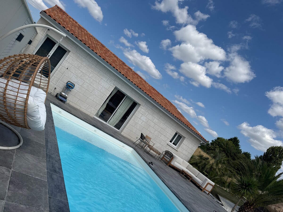 Bienvenue au Clos du Coteau. Maison de campagne de plein pied située à 8km du futuroscope 10 a 12 min Lieu calme et reposant avec sa cour qui est entièrement clos . Le logement se compose d une chambre pour 2 personnes et dans le salon un canapé convertible qui convient pour des enfants ou ados . Espace cuisine salon et salle de bain . Linge de lit et ménage inclus. A l extérieur vous pourrez vous détendre dans la piscine , il y a un coin repas ombragée et un barbecue extérieur.