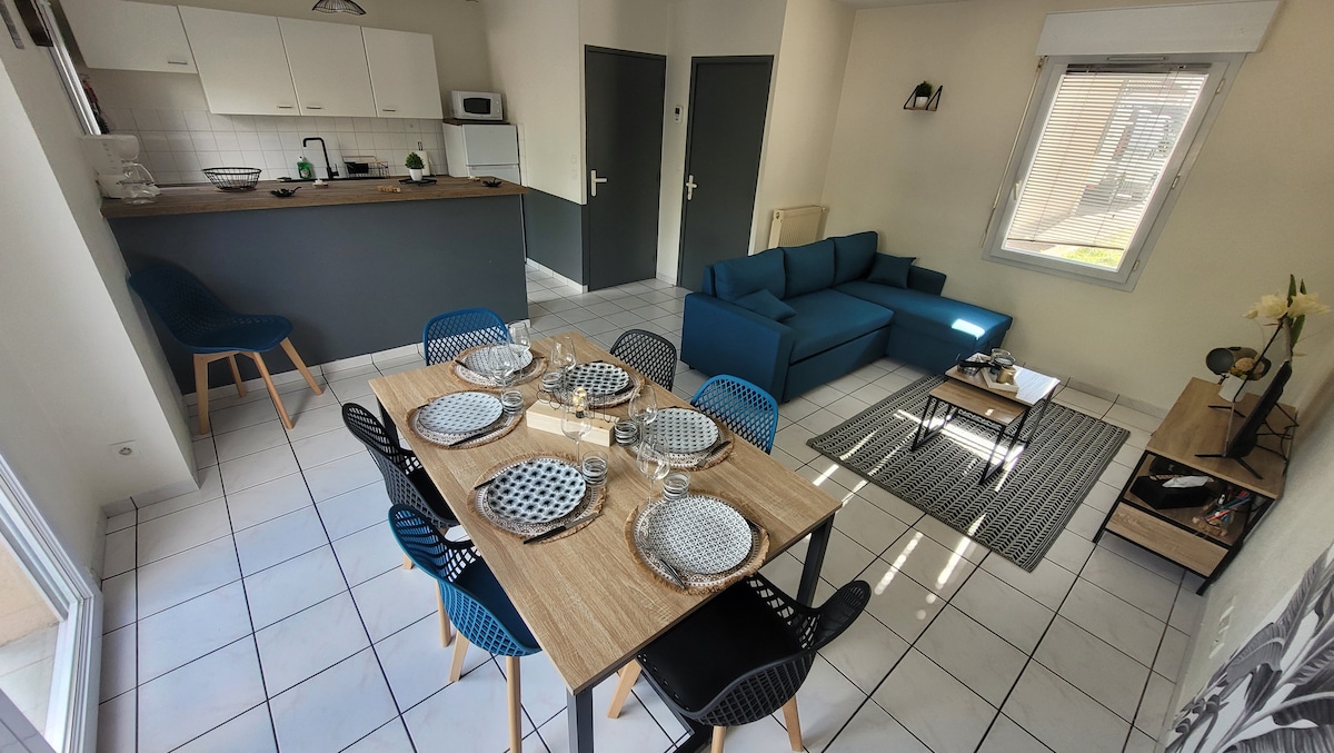 Venez poser vos valises dans cette ancienne longère rénovée en un appartement cosy & chaleureux ✨ La salle de bain spacieuse avec baignoire, ainsi que la literie neuve et de qualité vous permettront de vous ressourcer après votre journée au Futuroscope, une balade au coeur de la Vienne, ou un spectacle à l'Arena. Alliant le charme de l'ancien et le confort du moderne (cuisine équipée, WIFI, machine à laver) vous pourrez profiter de chaque instant et faire de votre séjour un moment de détente.
