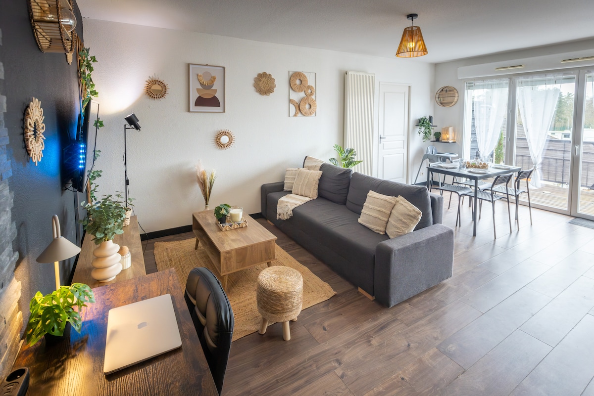 Bienvenue aux Charmes du Lac ! Offrez-vous une parenthèse de quiétude et de bien-être en amoureux dans un cadre tout confort à la décoration résolument romantique. Détente assurée grâce à notre jacuzzi 100% privatif. Découvrez enfin la touche de sensualité qu'offre le "Love Sofa"... Les petits déjeuners sont inclus le weekend,(en supp. le we). Pour parfaire votre séjour vous pourrez commander l'une de nos prestations complémentaires (mail demandé après résa). Alors... prêts à vous détendre ?