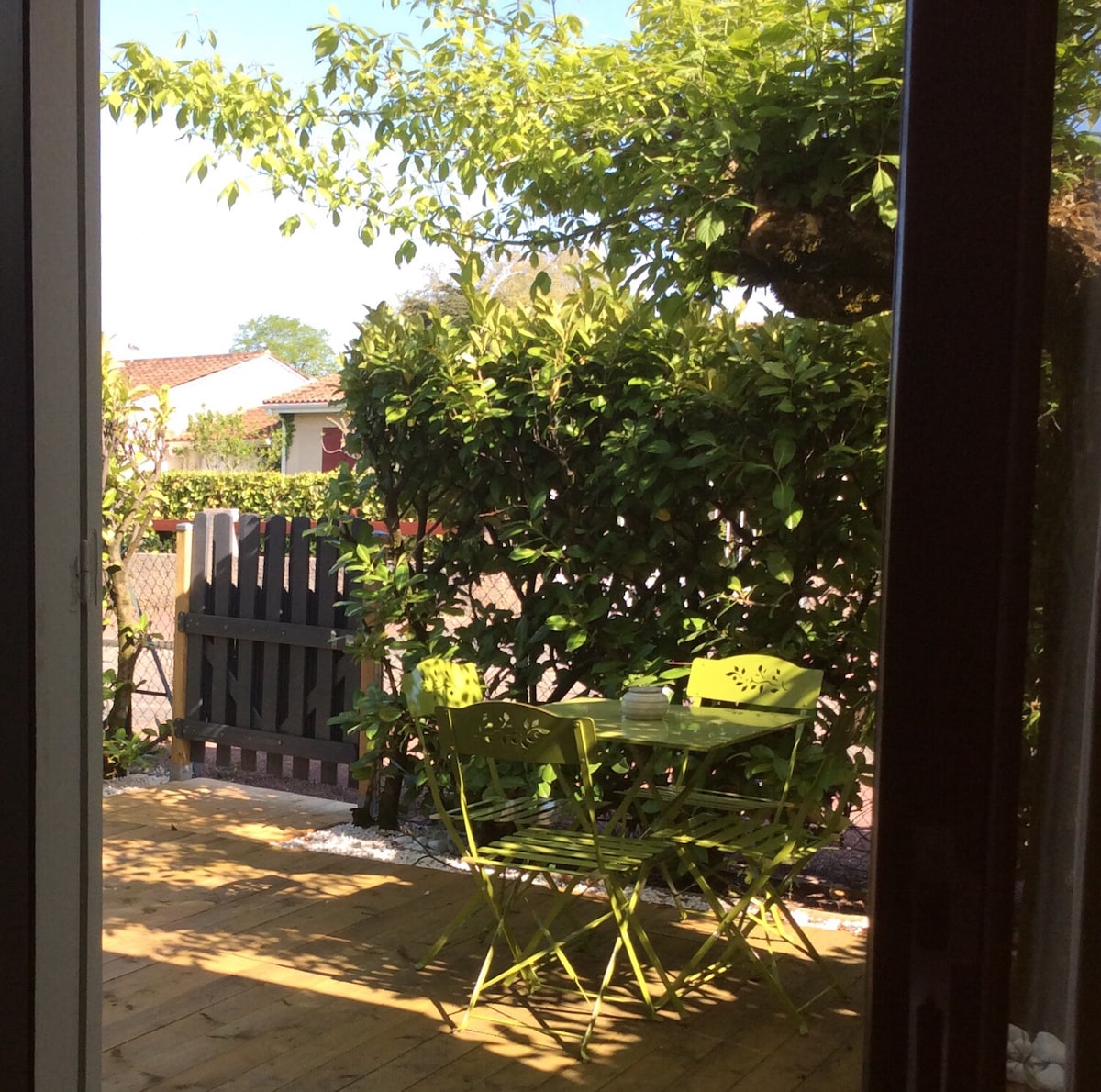 Modern, comfortable house with a south-facing garden offering complete privacy. Perfect for relaxing in a quiet neighborhood, 10 minutes from La Rochelle. The 50 m² (538 sq ft) accommodation includes a large living room with a double sofa bed, a fully equipped kitchen, a bathroom, a spacious bedroom with a double bed, a travel cot, and two private parking spaces. The house is decorated in a contemporary style, ideal for spending quality time with family or friends.