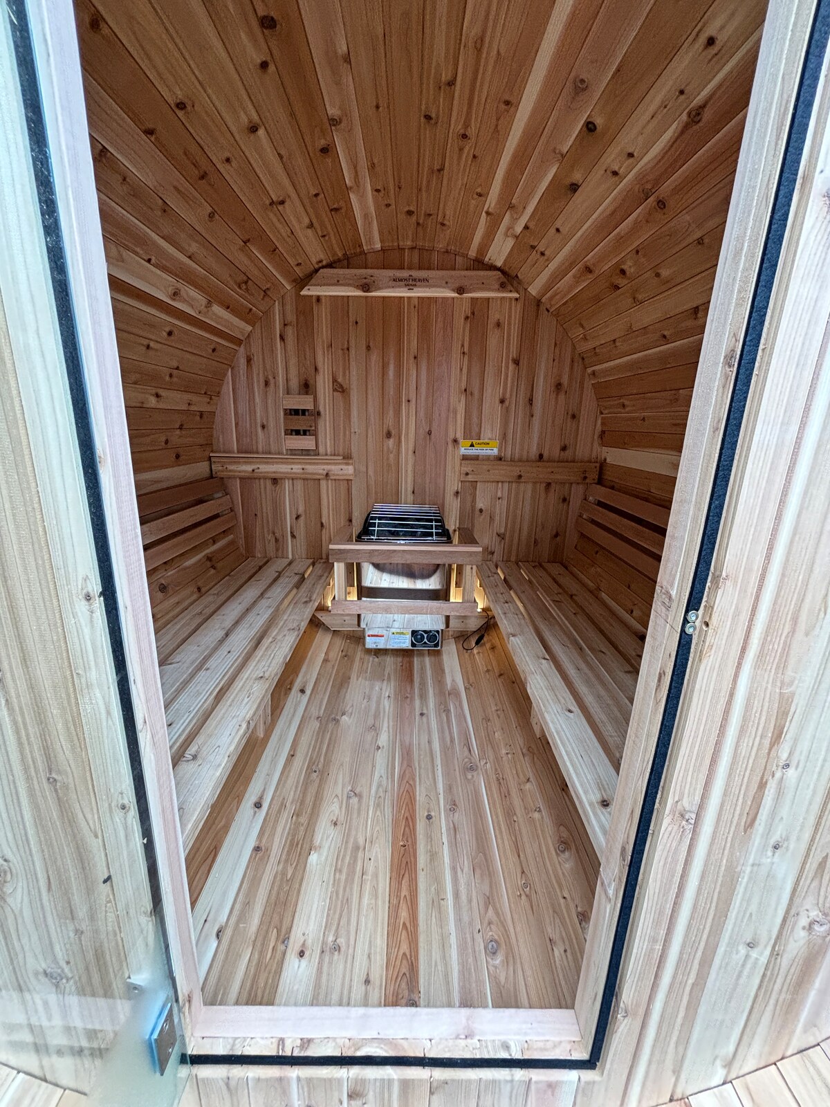 Unwind at our cabin in the woods! Located only an hour north of the Twin Cities, enjoy great fishing and gorgeous views with private riverfront access or retreat to the electric barrel sauna. Cabin also includes a screened in front porch with a fire table and plenty of space to gather. Enjoy the modern kitchen, full bath, 2 bedrooms, and a cozy living space with fireplace. ***Located next door to our Little Oak Cabin also available to rent (each w/ private sauna, fire pit and river access)***