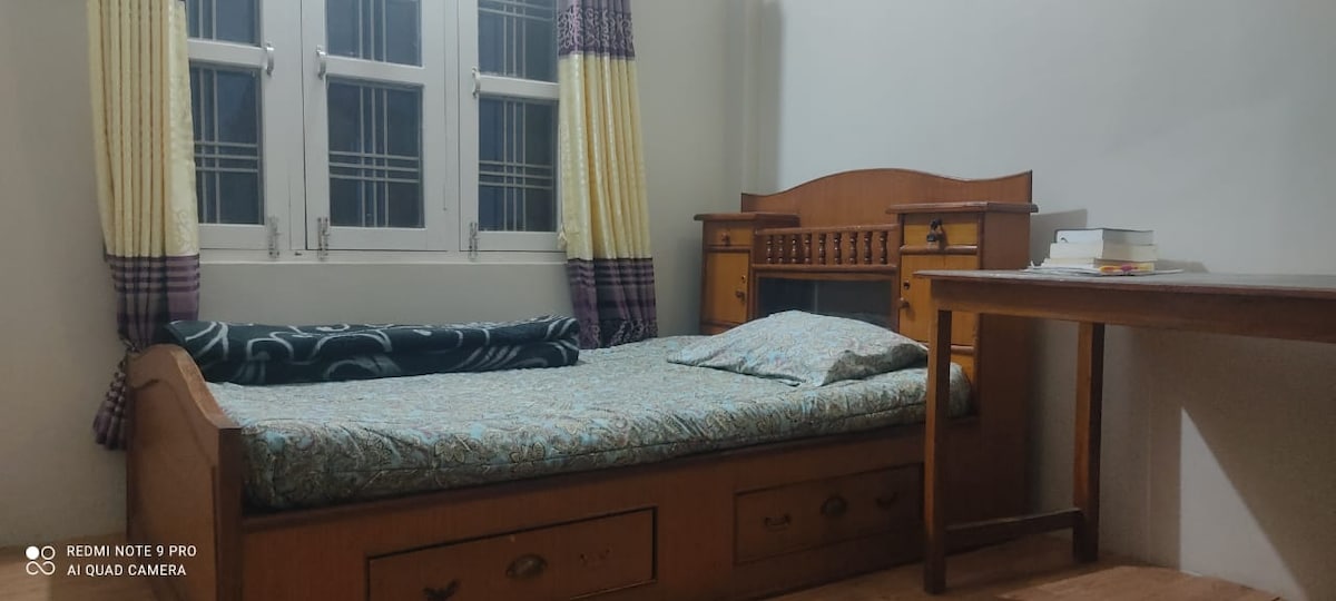 Relax with the whole family at this peaceful place to stay. 3 specious bed room, 2 attached bathroom, 1 common bathroom. Bed room with mountain view, full security, located in center of Pokhara. Very closed to Old bazaar, and you can enjoy the local life. Lakeside is 4km away from here, but the bus and taxi is easily access to everywhere around Pokhara. The supermarket, hospital, and ATM are in walking distance.