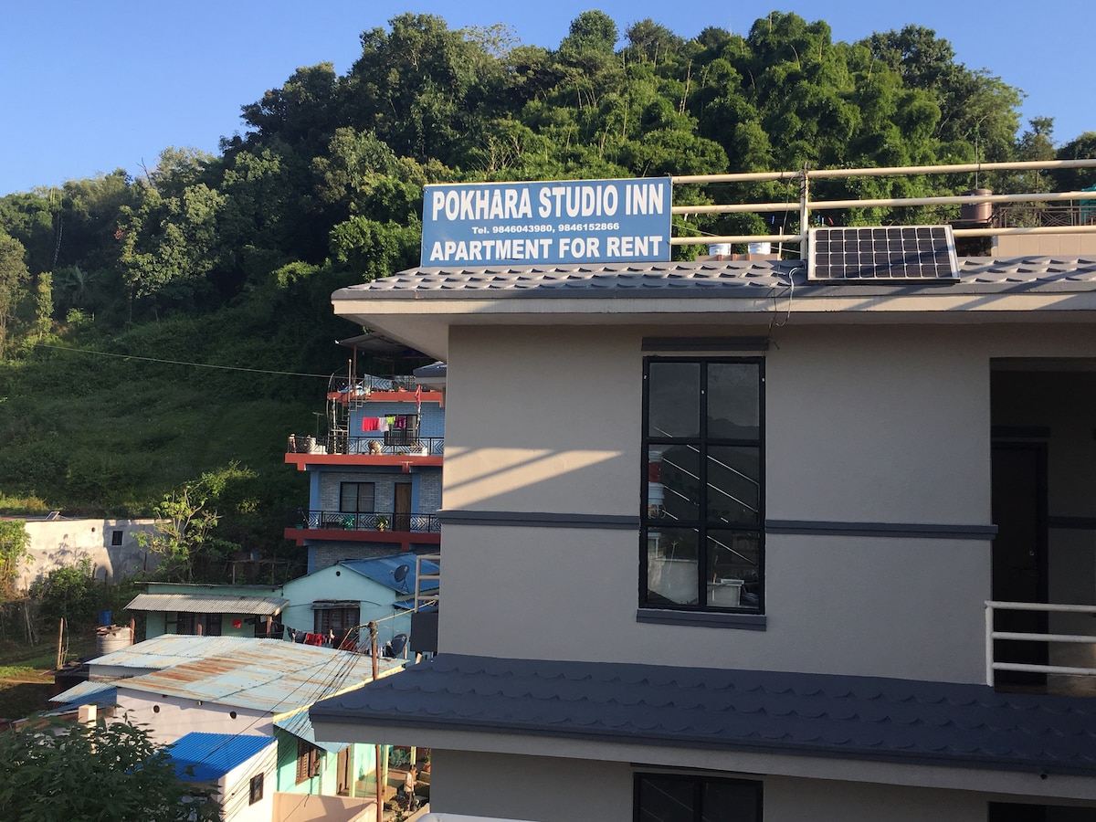 Our cozy studio apartment in the heart of Pokhara offers comfort and convenience. The space includes an equipped kitchen with attached bathroom , a queen-sized bed and comfy mattress, a smart TV, and free Wi-Fi. Enjoy stunning 360-degree views of the Pokhara Valley and Himalayas from the rooftop, perfect for sunset BBQs. A taxi stand and public bus stop are just a minute walk away, providing easy access to tourist destinations. Perfect for a long or short relaxing, convenient stay in Pokhara.