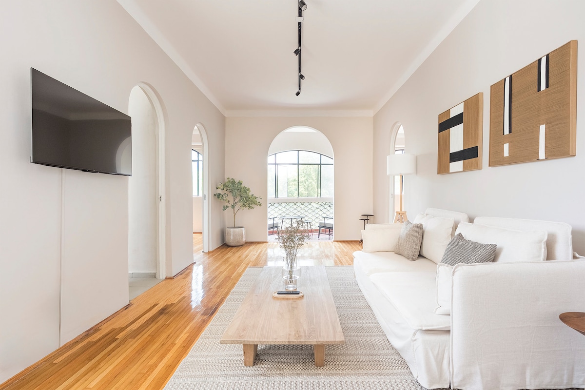 Minimalist urban apartment in the heart of Polanco. As you come inside, you will be immersed in a comfortable atmosphere.The peaceful bedroom is characterized by generous ceilings, king size bed with luxury bedding and a complete bathroom. An extra half bathroom, a spacious living and dining room with fully equipped open kitchen. Natural light and ventilation throughout the spaces. The location is unbeatable, in a safe and calm street in Polanco, the most exclusive neighborhood in Mexico City.