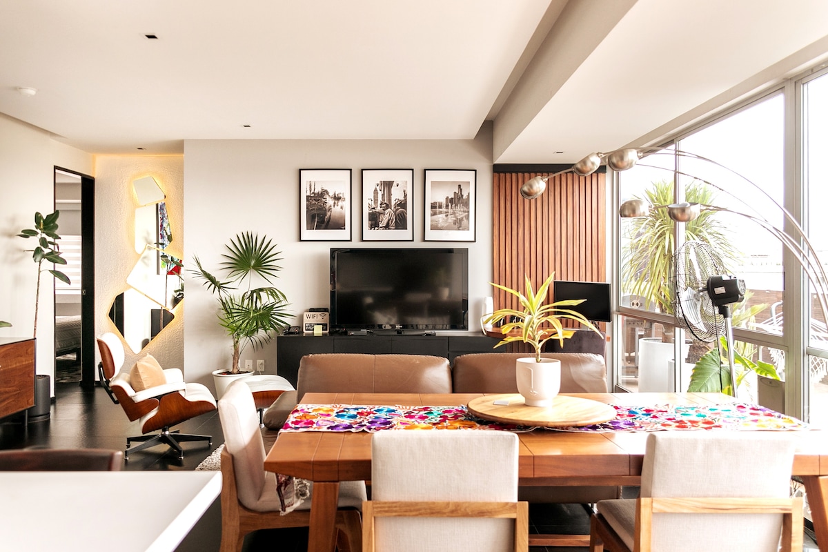 平均评分 4.88 分(满分 5 分),共 392 条评价带阳台的现代Loft,可欣赏墨西哥公园的美景