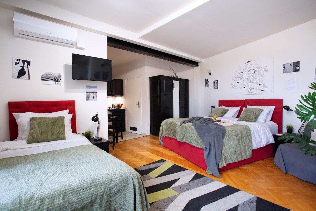 The newly-opened Aparthotel Inspire Miodova Residence perfectly located in the center of Krakow Old Town combines functionality and convenience, it is a space designed for comfortable rest and ensuring privacy. Modern electronics / household appliances, high-class furniture or designer accessories create a unique arrangement and a fully equipped kitchenette, a luxurious bathroom and ergonomic solutions make your stay in our apartments a real pleasure.