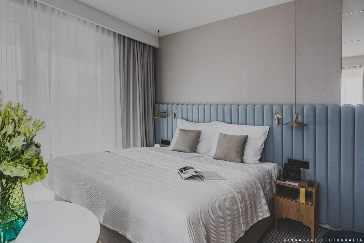 One-bedroom apartments ranging in size from 40 to 45 m² feature a beautifully designed living area with a spacious lounge equipped with a double sofa or corner sofa, a fully equipped kitchenette, an elegant bathroom, and a cozy bedroom offering restful sleep and relaxation. A pleasant time is also guaranteed by a cozy balcony or terrace (up to 5 m²), providing the perfect spot to unwind outdoors. The attached sample photos represent the category of the apartment being reserved.