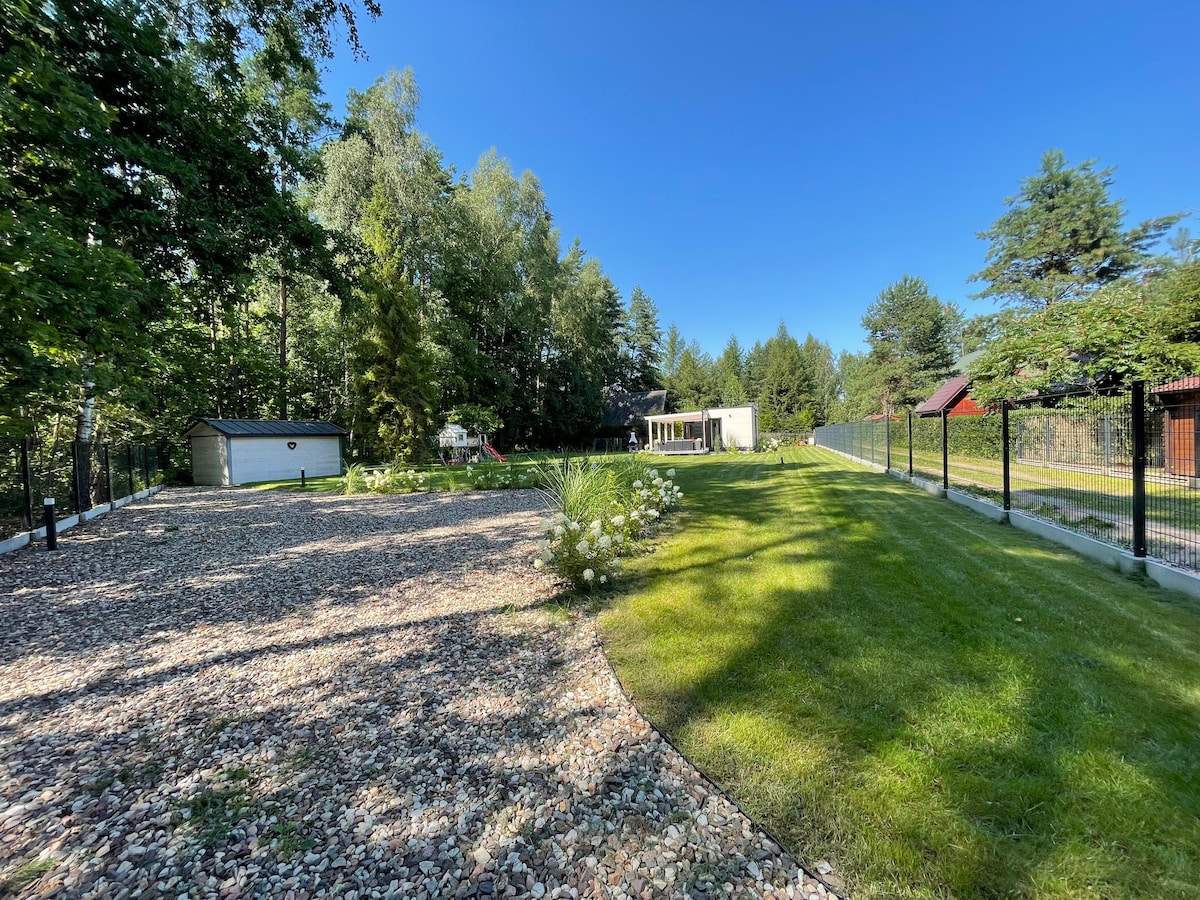 Domek w typie "cabin" na ogrodzonym, dużym i zadrzewionym ogrodzie. Prawie 1000 m2 zieleni sprawia, że jest tu pełna prywatność. Okolica jest spokojna. Trzy piękne duże jeziora w odległości 500-700 m Goście mogą liczyć na prawdziwą odskocznię od zgiełku, rozpalić w kominku, wsłuchać się w szum drzew, kumkanie żab i śpiew ptaków. Tutaj przyjedziesz złapać oddech w bezpiecznym miejscu na łonie przyrody, w sercu Pomorza Kaszubskiego.