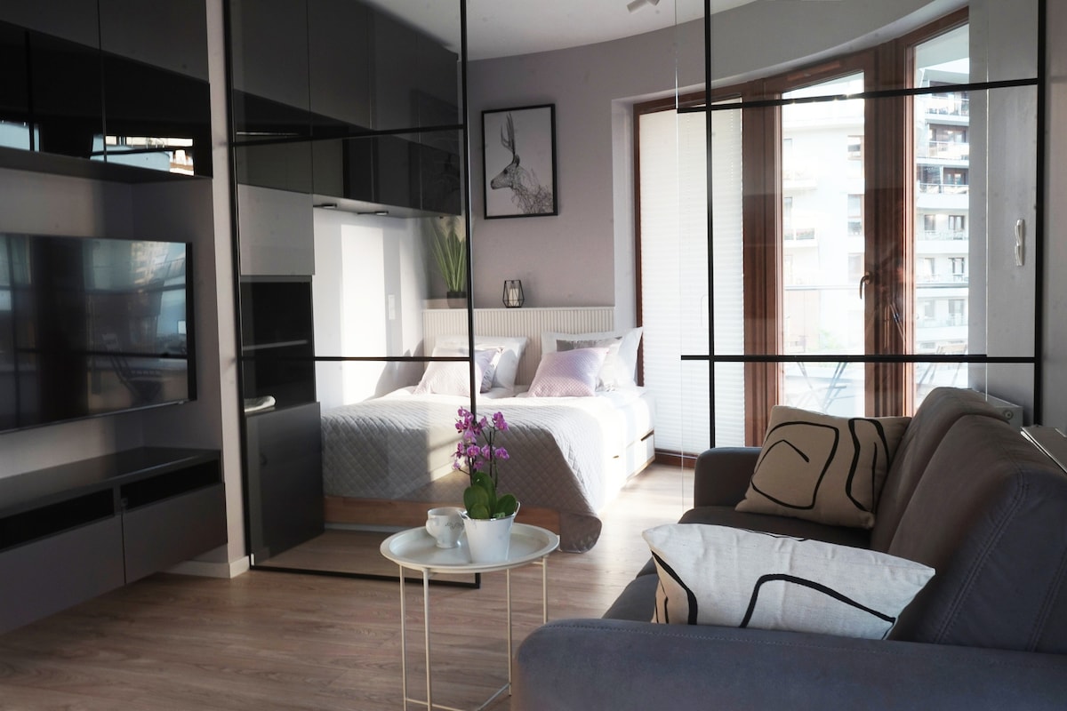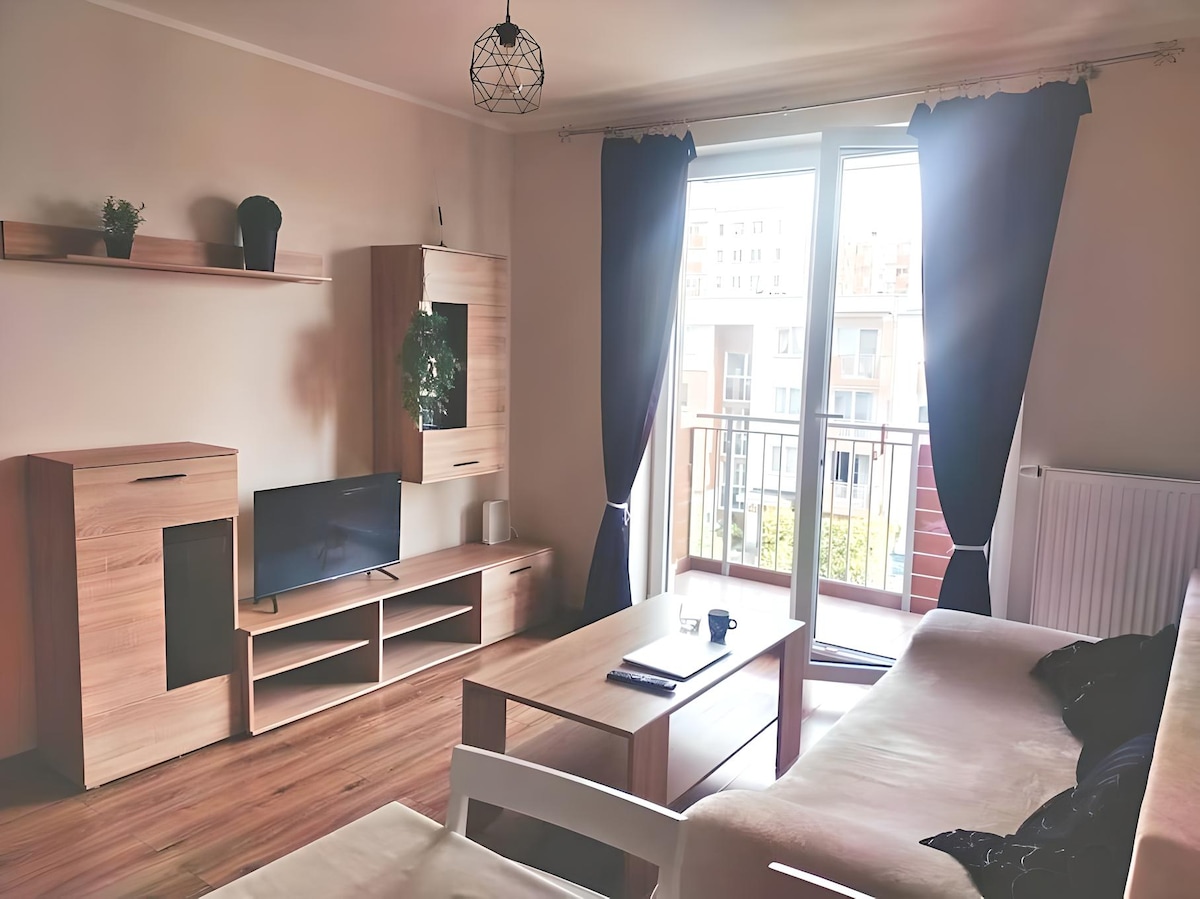 An exclusive, modern and functional apartment with a bedroom, large living room with a beautiful view of Wroclaw. It is located in a new apartment building on the 13th floor with its own underground car park and 24/7 security. The fully equipped kitchen allows you to prepare homemade meals. High standard, comfort, security and a sense of privacy make guests feel at home. Wireless Internet and Netflix. Access to the gym, dry and steam sauna, jacuzzi and children's playroom.