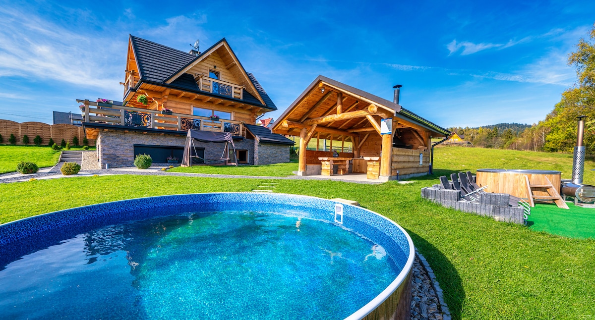 山间豪华小屋,配备桑拿房、按摩浴缸、游泳池