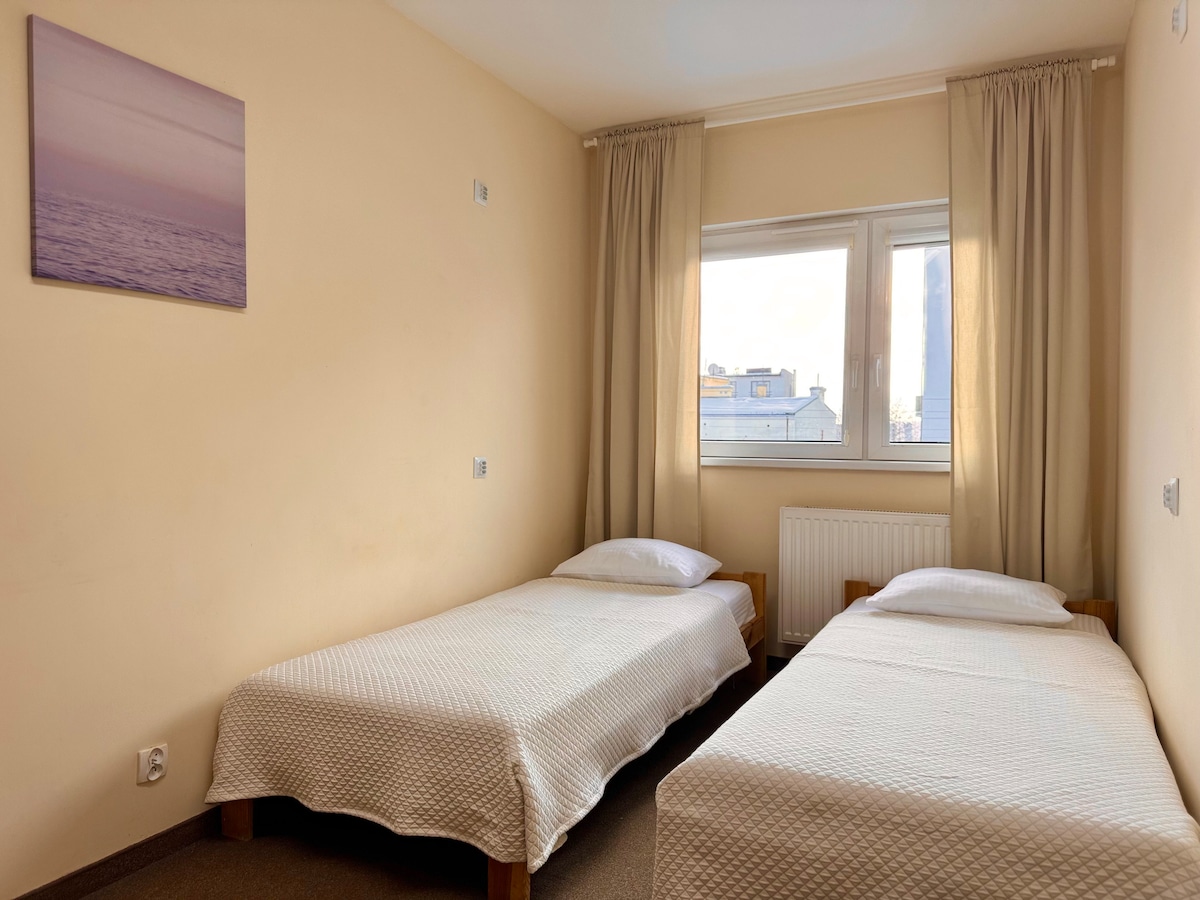 Oferujemy łóżko w przestronnym 4-osobowym pokoju ze wspólną łazienką. W cenie noclegu każdy Gość otrzymuje czyste ręczniki, śnieżno białą pościel, dostęp do gniazdek elektrycznych i szybkiego WI-FI oraz kluczyk do szafki, w której bezpiecznie przechowasz rzeczy osobiste.