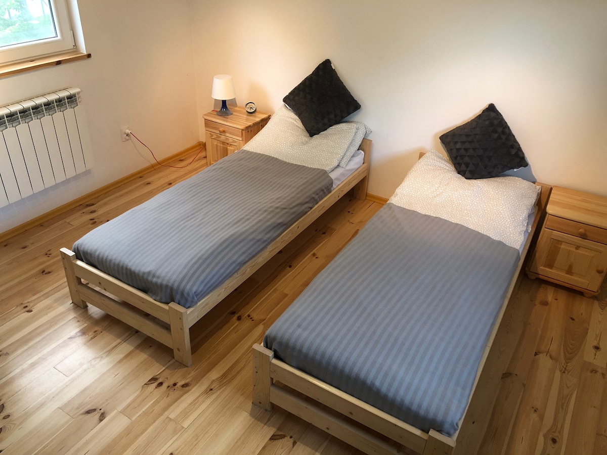 A double room with private bathroom. The room has: - two single beds - LCD TV with access to cable channels, - public kitchen in which there is (fridge, electric burner; electric kettle; dishes and cutlery, pots) Bed linen and towels provided.