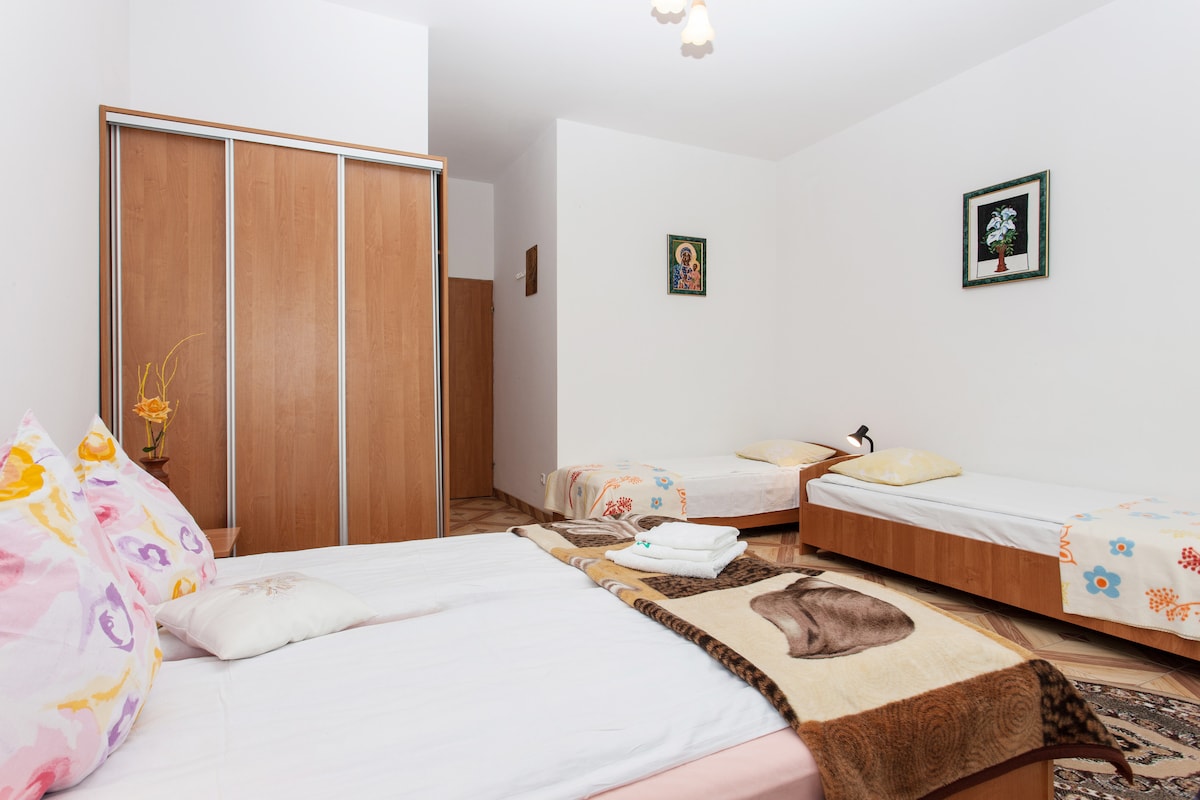 Triple room with shared bathroom. The room has: - three single beds - LCD TV with access to cable channels, - public kitchen in which there is (fridge, electric burner; electric kettle; dishes and cutlery, pots) Bed linen and towels provided.