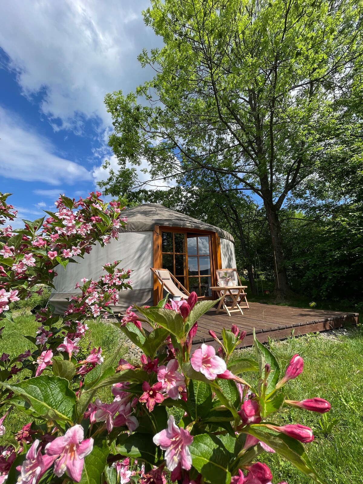 Romantic place for couples, close to nature. Silence, forest around, perfect base for hiking and trips in the area. The yurt is a year-round facility erected on a foundation, with wood wool insulation and infrared electric heating. Set and fastened to the foundation plate. The skylight in the roof allows you to watch the stars in the sky and on warm days it allows you to ventilate the yurt well. The main room has an area of 49 m2 and the glampod with a kitchen and bathroom an additional 15 m2