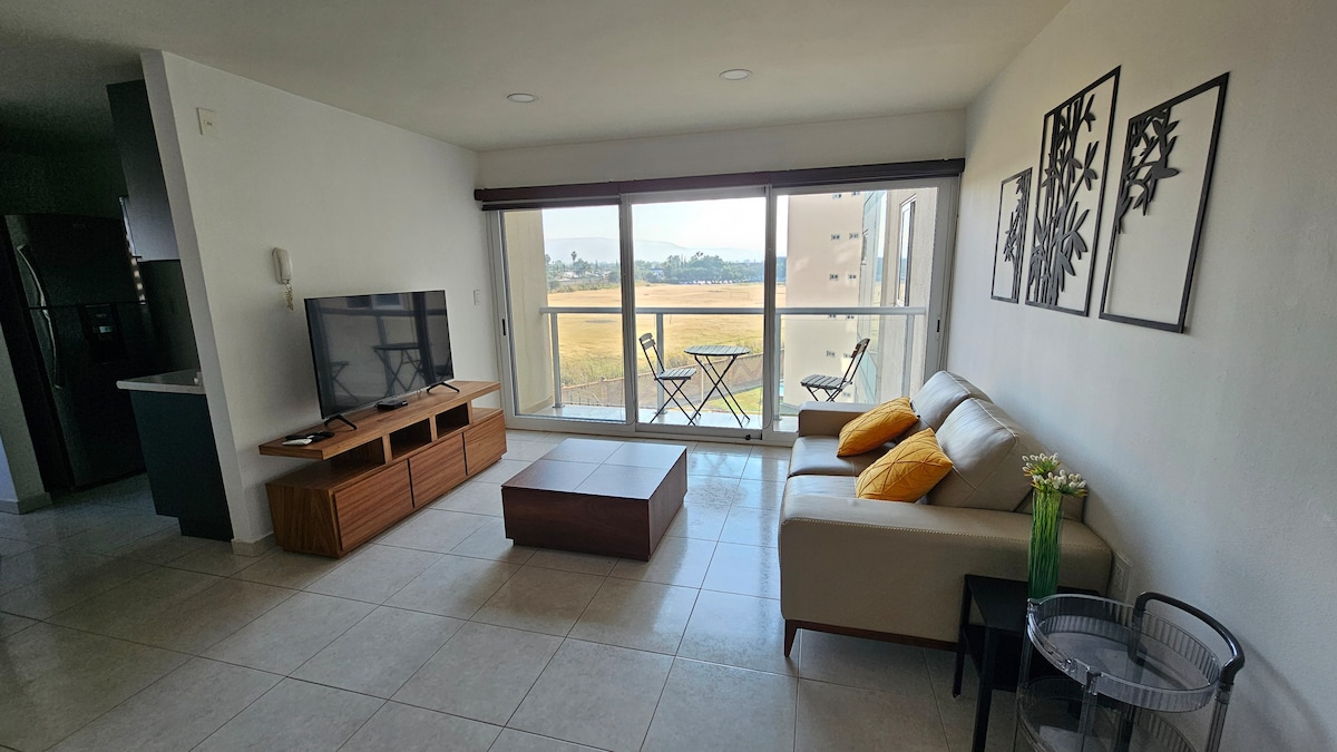 Trabajo o Esparcimiento , Pradera 3 0 3 es la opción , cerca de muchos puntos de interés. Moderno y confortable departamento de 90 m2 y 2 recamaras 1.5 baños, gran cocina y área social completamente equipado. Ubicado en zona sur a 10 minutos de poliforum y altacia , outlets , fácil acceso a Blvd. aeropuerto , cerca de todo, supermercados etc. En complejo privado , con estacionamiento independiente y privado para 2 vehiculos. Vigilancia las 24 horas.