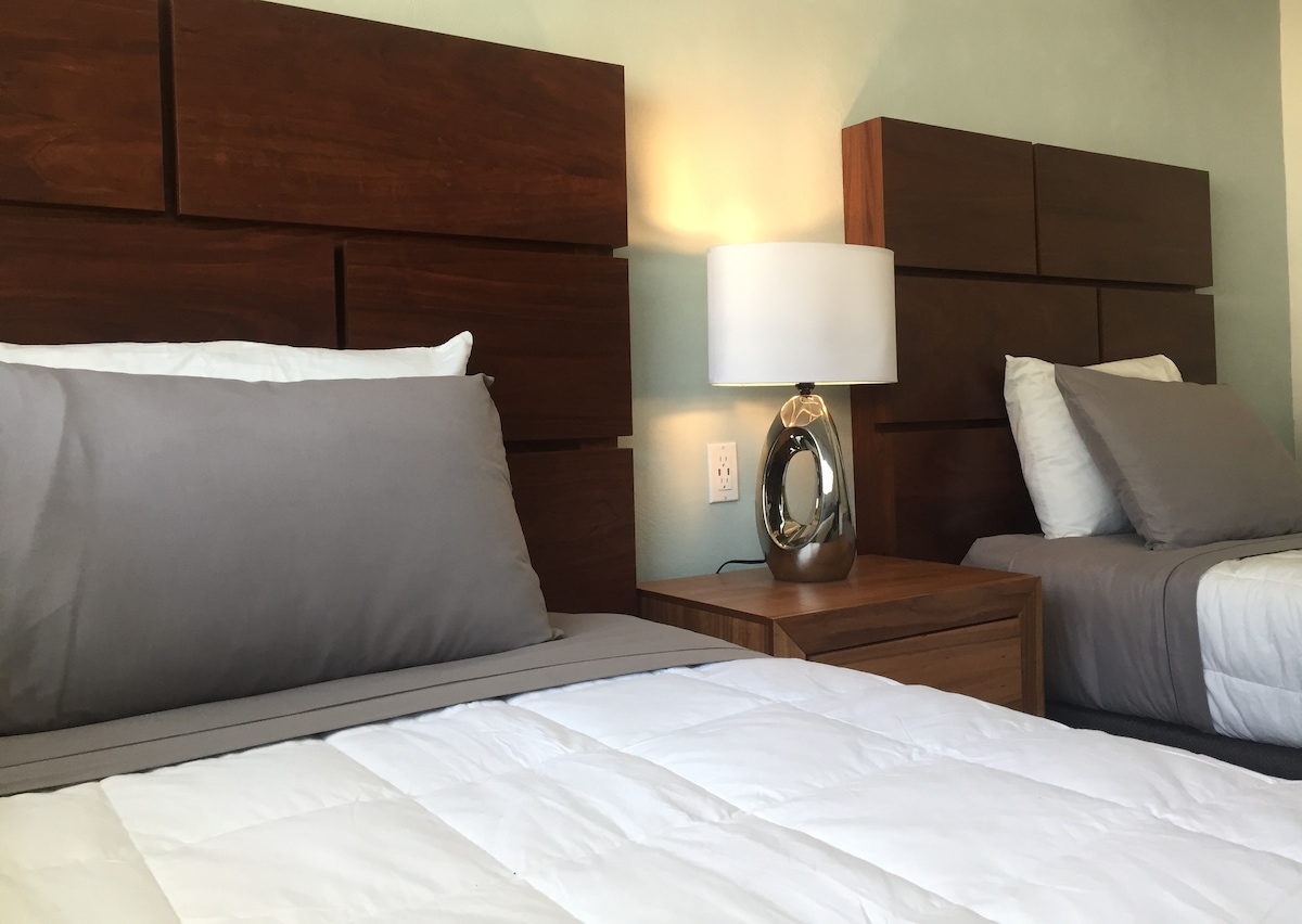 Disfruta la cercanía al Poliforum en nuestro departamento recién remodelado, ideal para descansar o trabajar con acceso a estacionamiento privado. Relájate en nuestras cómodas camas y disfruta de entretenimiento ilimitado con TV inteligente y alta velocidad de internet inalámbrico. Además, facilitamos tu estancia con facturación sencilla. Vive León desde una ubicación privilegiada, perfecta para tu próxima aventura o compromiso laboral.