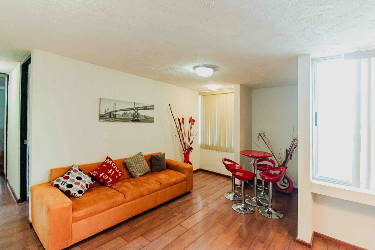 全功能阁楼式公寓,距离 Poliforum 会展中心 5 分钟,4 个街区,配备空调
