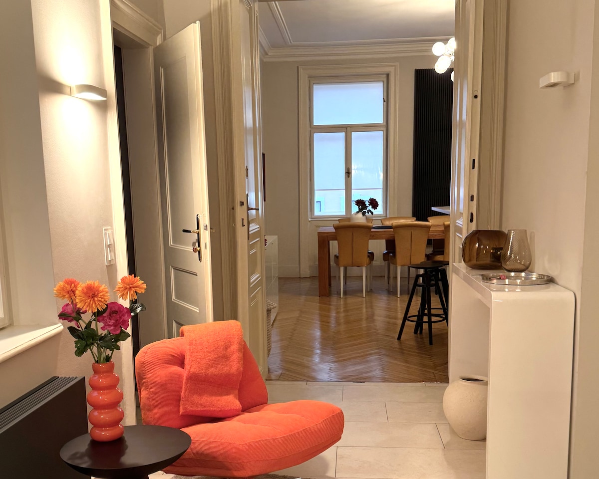 This cozy, high-end vintage apartment in the heart of Vienna is perfect for romantic weekends or longer stays – ideal for one or two guests. Enjoy 89m² of elegant living on the 7th floor, with elevator access and sweeping city views. Stroll to Vienna’s main sights or catch the U2 at Schottentor, just steps from your door. Unwind on the sofa, take in the charm, and enjoy everything you need right at your fingertips.
