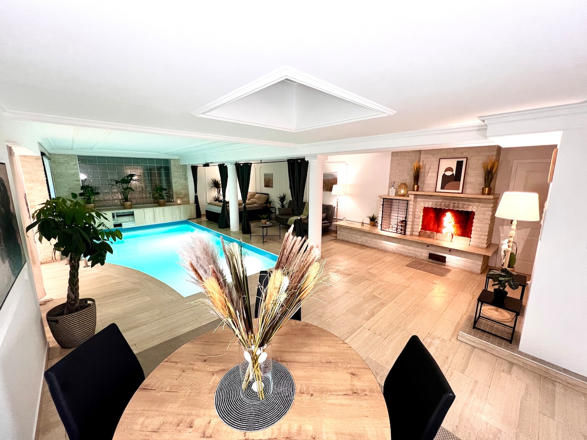 Luxuriöses Apartment mit eigenem Indoor-Pool, Sauna und Kamin – ein Rückzugsort zum Entspannen und Genießen. Direkt am Pool befindet sich ein gemütlicher Schlafbereich sowie ein Sofa, . Die voll ausgestattete Küche, Dusche/WC, stilvolle Einrichtung und viele liebevolle Details sorgen für höchsten Komfort. Ein privater Parkplatz steht ebenfalls zur Verfügung. Perfekt für romantische Auszeiten, Wellness-Tage hier erlebst du absolute Privatsphäre und Erholung.