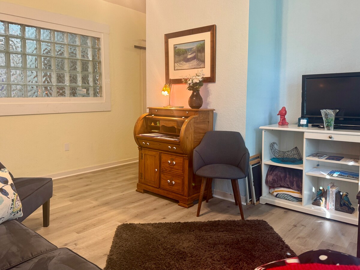 Escape to our cozy 1 bed, 1 bath apartment, perfectly nestled adjacent to the main house yet completely private. Whether you're seeking a romantic couples' retreat, a productive work trip, or some well-deserved "me time," this spot has it all! After an exciting day out, unwind in our comfortable space, relax & recharge. With assigned parking, you can come & go with ease!
