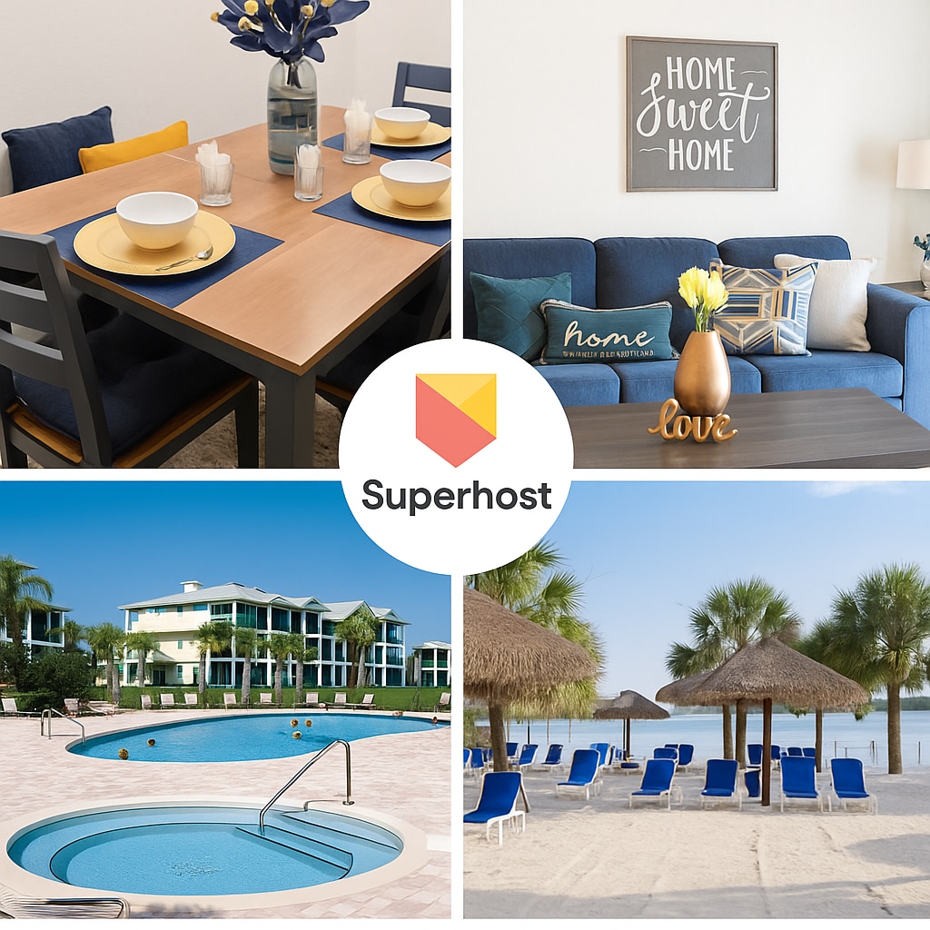 As a Superhost, I am dedicated to offering you a 5-star experience in this beautiful condo. With 3 spacious bedrooms and 2 bathrooms, this lovingly decorated and cozy space has everything you need for a great vacation. Fully equipped, you’ll feel right at home from the moment you walk in. Enjoy all the perks of a full-service resort—without any resort fees! It is located just minutes from Disney and top attractions. Book your stay now and experience the best of Bahama Bay Resort.