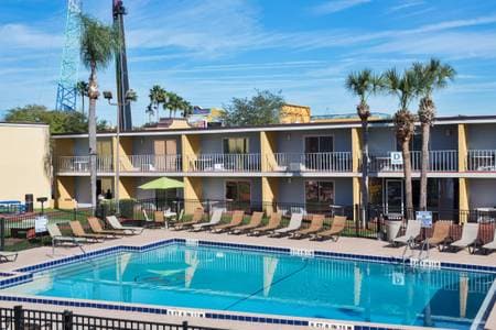 Experience the perfect blend of comfort and convenience just minutes from Orlando’s top attractions. Explore Disney Springs, only 6 miles away, or dive into the thrills of Disney’s Wide World of Sports. After a day of adventure, unwind by the outdoor pool or take in serene lake views from the gazebo. Enjoy family-friendly amenities, spacious rooms, and easy access to Orlando International Airport, just 18 miles away.