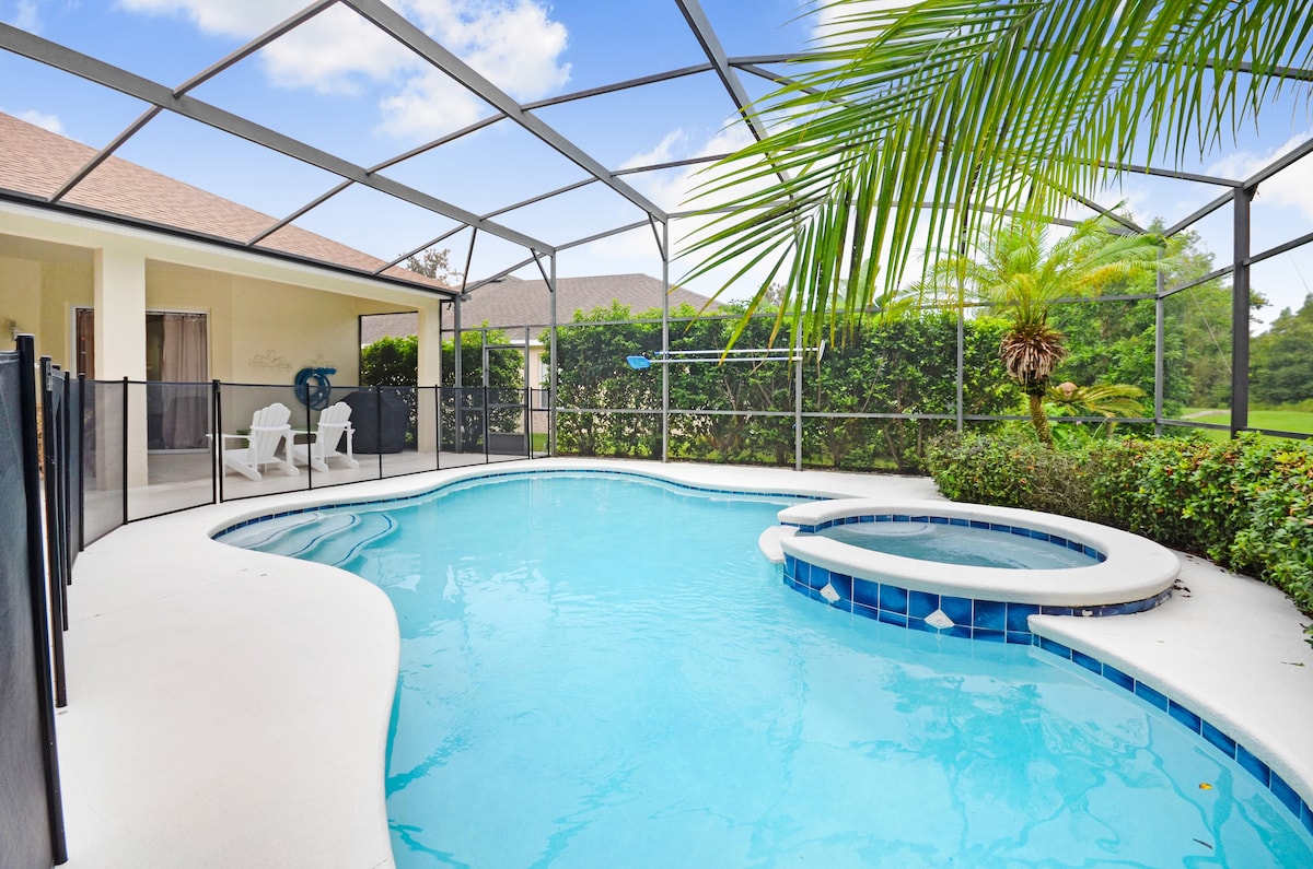 明亮的4卧室房源,带泳池,距离迪士尼世界20分钟