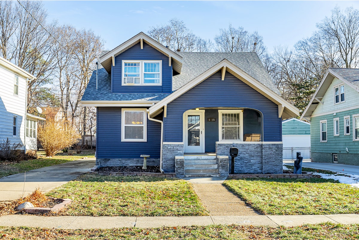 Centrally located to Downtown Des Moines, sits our fully remodeled, 5 bedroom, 2 full bathroom home that can sleep 14 guests. The Hay Loft offers privacy for your large group, yet it's also close to everything that Des Moines has to offer! Our amenities include: spacious hot tub, fire-pit, grill, office space and a fully stocked kitchen. Fiber internet/WiFi + smart TVs in every room. Just a couple of blocks from Drake College, and within three miles of the Iowa Event Center and Casey's Center