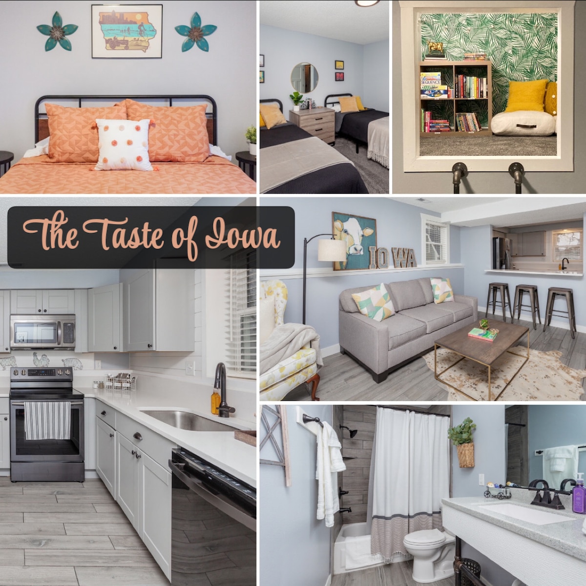 Stay at The Taste of Iowa! A Perfect location central to many DSM staples nestled off a quiet residential side street! The space has a queen bed in room 1, two Twin XL beds & a fun reading nook in room 2, & full bath. Easy remote check-in w/ both driveway parking & free street parking offered. A quick drive to: ☀ ~8 min to DSM Airport ☀ ~7 min to Wells Fargo Arena ☀ ~8 min to the Zoo ☀ ~7 min to the Grays Lake ☀ ~14 min to the Fairgrounds ☀ ~22 min to Jordan Creek ☀ ~20 min to Adventureland
